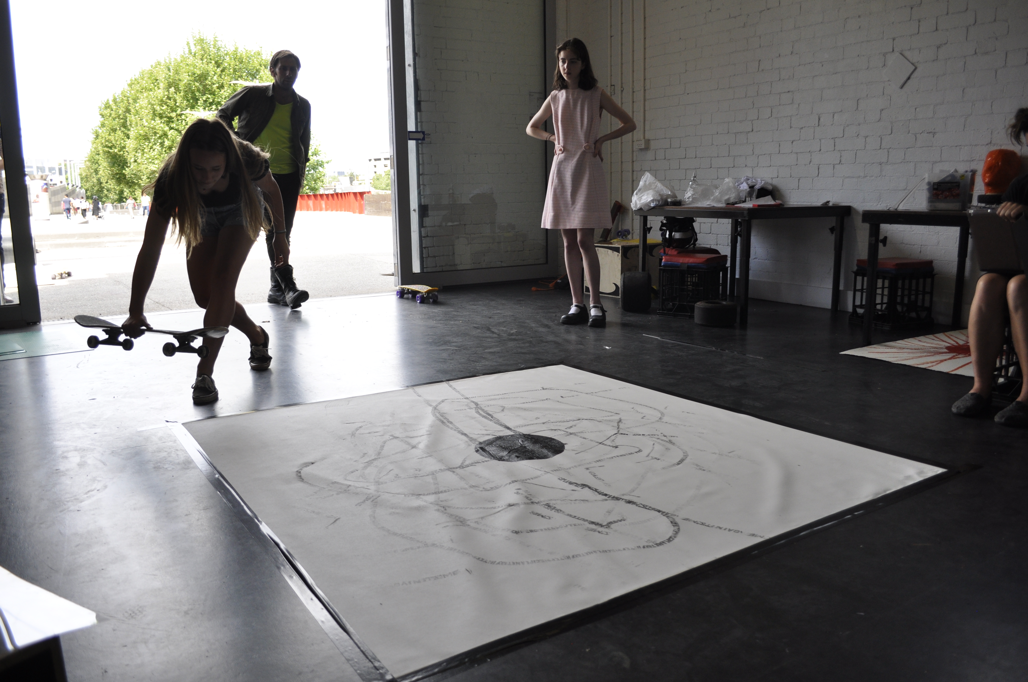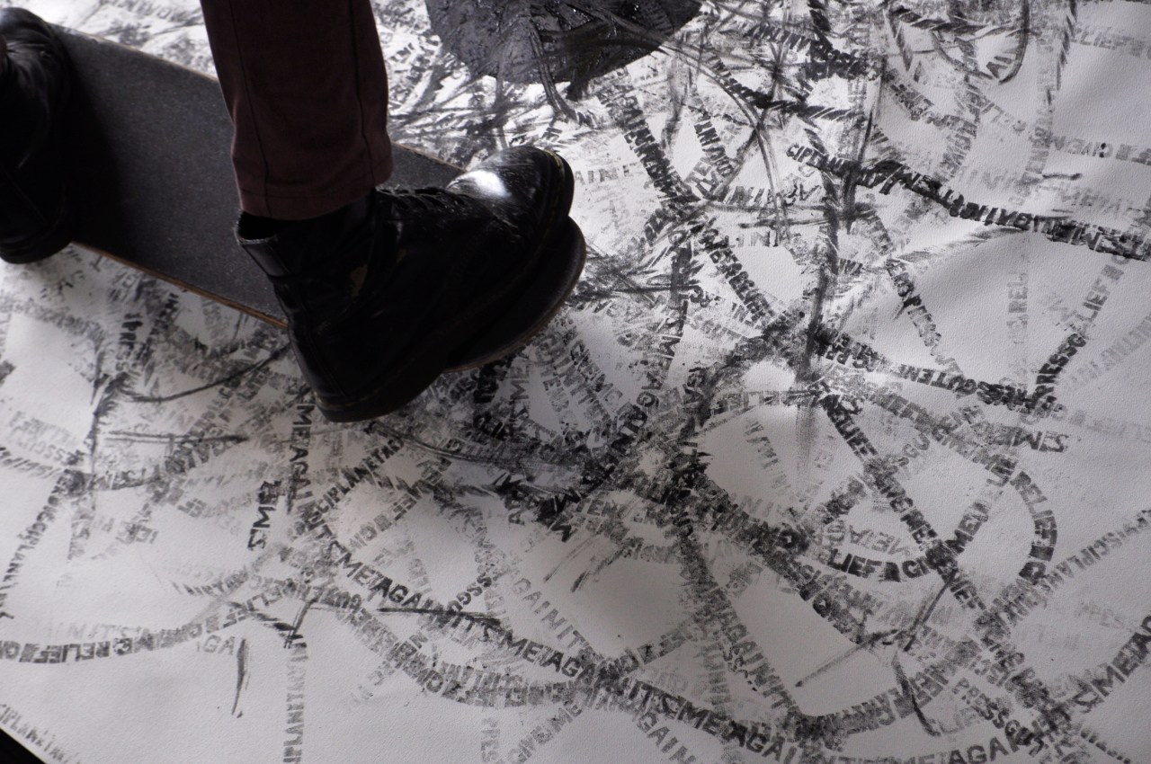 PERFORMPRINT: Artist in Residence at SIGNAL Date: 2015/05/13Author: Michael Meneghetti Category: Community, Performprint Tags: Artist in Residency, Beauty Bearings irreverence, Experiment in print and performance, experimental printmaking, Performprint, Performprint Exhibition, Printmaking, process art, SIGNAL, Skater Editions, Stations of the BBQ Post navigation ← PERFORMPRINT: Bearings, Beauty and Irrelevance at FAC Print Award PERFORMPRINT FLY TO CHINA – POZIBLE CAMPAIGN → Over the course of November 2014, Performprint ran weekly experimental printmaking workshops at youth art and design hub SIGNAL . From arrow prints to skateboard wheel reliefs, the month-long residency culminated in a large, four screen video work. Share this: Click to share on X (Opens in new window) X Click to share on Facebook (Opens in new window) Facebook Like Loading... Related